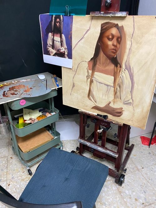 En mi pintura narrativa me interesa capturar esos momentos donde algo está a punto de pasar, o acaba de pasar. Me gusta que la imagen cuente una historia, pero sin decirlo todo. Que quien la mire se quede un rato, sienta algo familiar, aunque no sepa por qué. Trabajo con lo cotidiano, con lo simbólico, y con ese silencio que a veces dice más que las palabras.